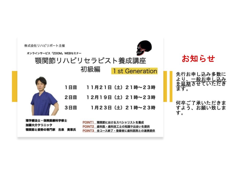 9月23日より先行お申し込み(以前のセミナー受講生対象)を開始しました。