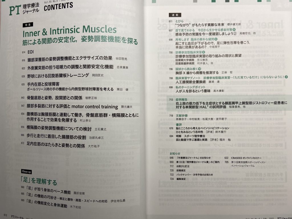 今月発売のPTジャーナル6月号に「外側翼突筋の担う咀嚼力の調整と関節安定化機構」というタイトルで執筆させていただきました。